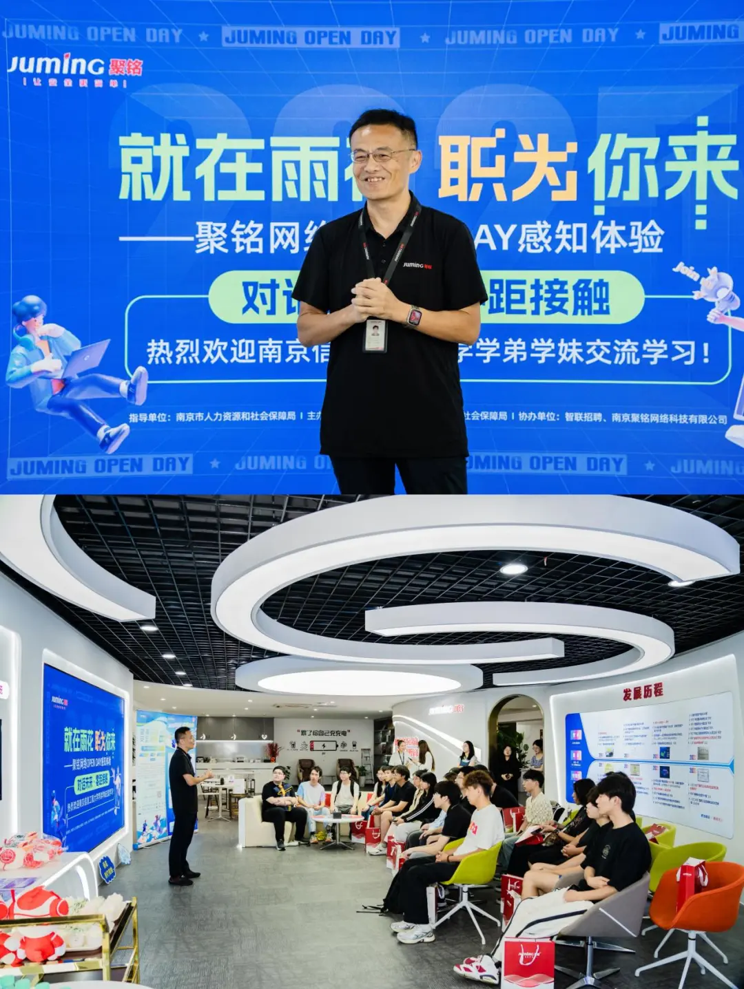 6 月 27 日,“就在雨花 职为你来——2025 年雨花 OPEN DAY 感知体验行动” 圆满举办。来自南京信息工程大学的学子们走进聚铭网络,开启了一场沉浸式的企业访学之旅。