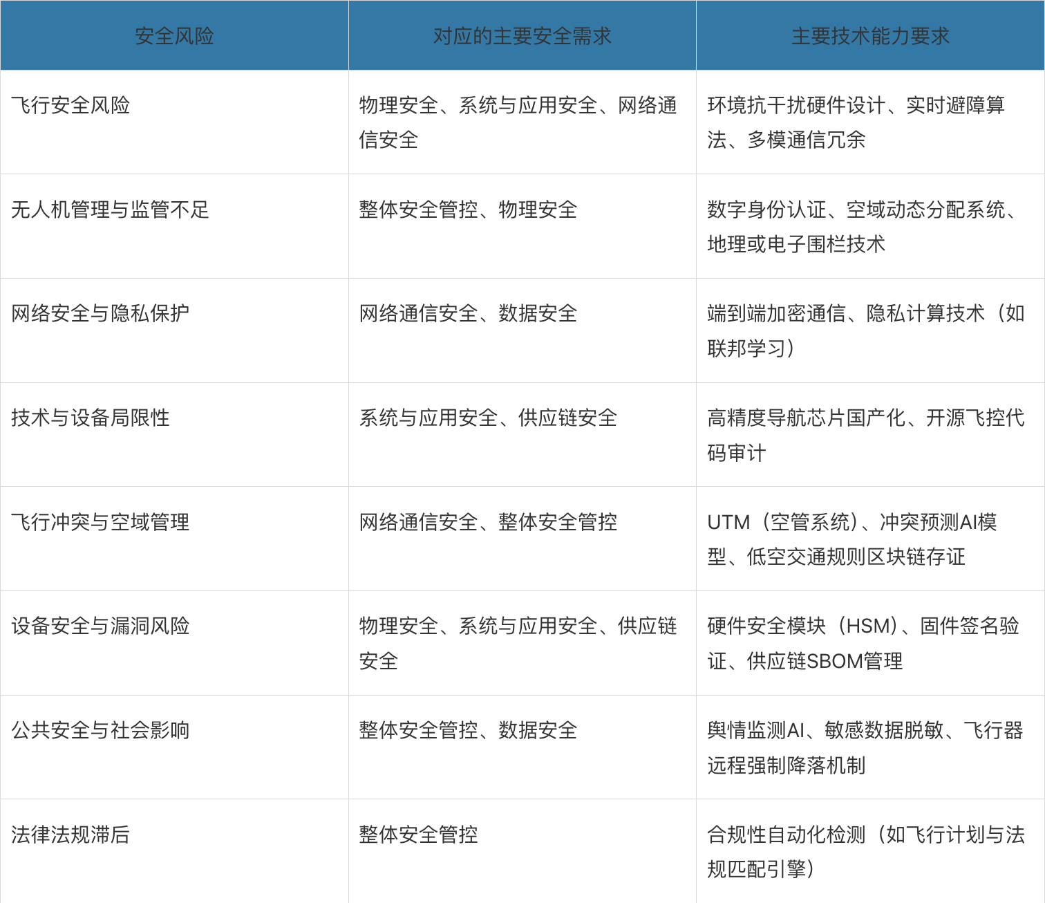 低空安全风险与需求的对照梳理