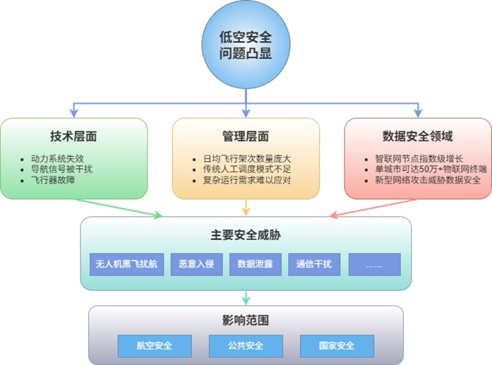 与此同时,低空安全问题日益凸显。如无人机黑飞扰航、恶意入侵、数据泄露、通信干扰等事件频发,对航空安全、公共安全和国家安全构成严峻挑战: