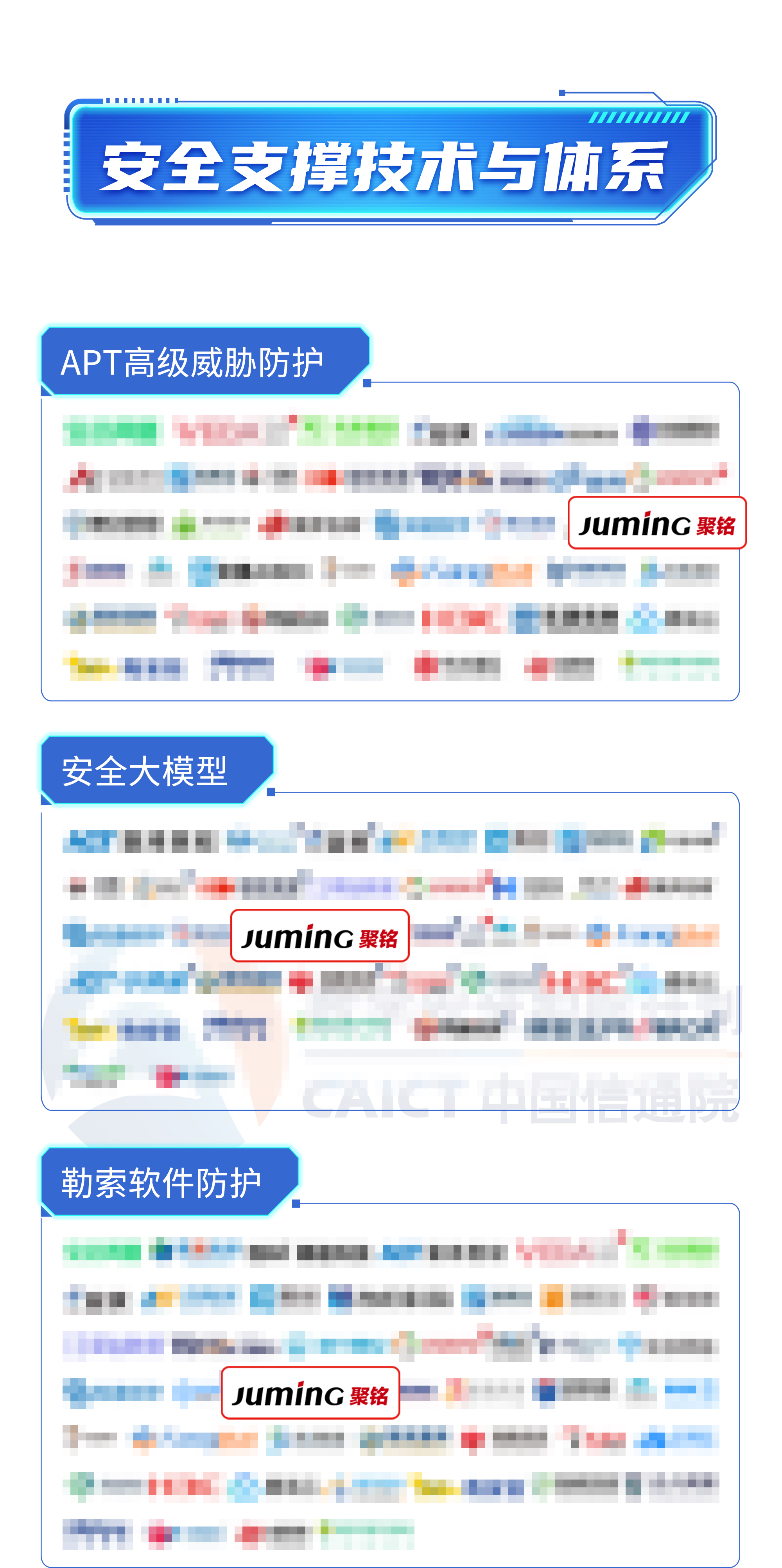 值得一提的是,此次是聚铭网络连续第三年入选中国信通院《数字安全护航技术能力全景图》,且覆盖领域实现进一步拓展,具体包括:APT高级威胁防护、安全大模型、勒索软件防护、安全监管态势感知、安全运营态势感知、安全信息和事件管理(SIEM)、安全响应自动化(SOAR)、网络空间资产测绘、攻击面管理、用户实体行为分析(UEBA)、工控安全防护、工控安全监测、工控安全管理、终端安全防护、终端安全管理、堡垒机、数据库安全、数据安全态势感知、安全咨询与规划、安全运维与托管服务、安全意识与培训、渗透测试/众测、攻防演练、应急响应与重保服务、流量监测与分析、入侵检测与防护、下一代防火墙、上网行为管理、网络准入控制、网络隔离与交换、抗DDOS、视频监控安全、Web应用扫描与监控、WAF/新一代WAF、云安全态势管理、信创态势感知平台共36个关键细分领域。