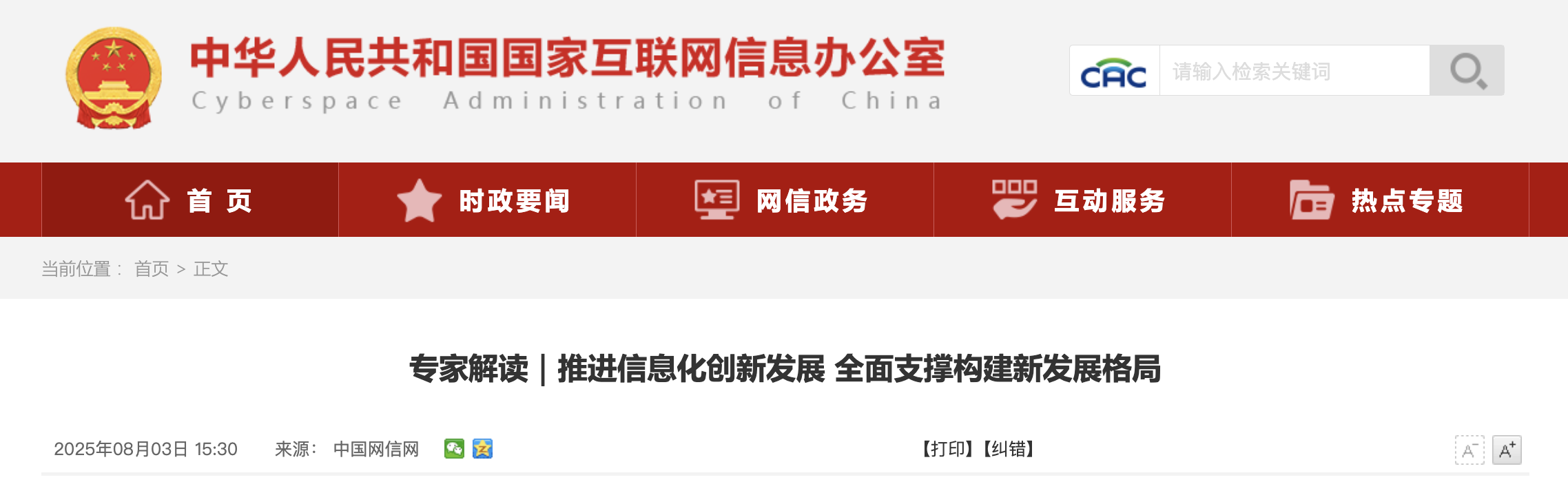 信息来源:中央网络安全和信息化委员办公室 https://www.cac.gov.cn/2025-08/03/c_1755948727822002.htm