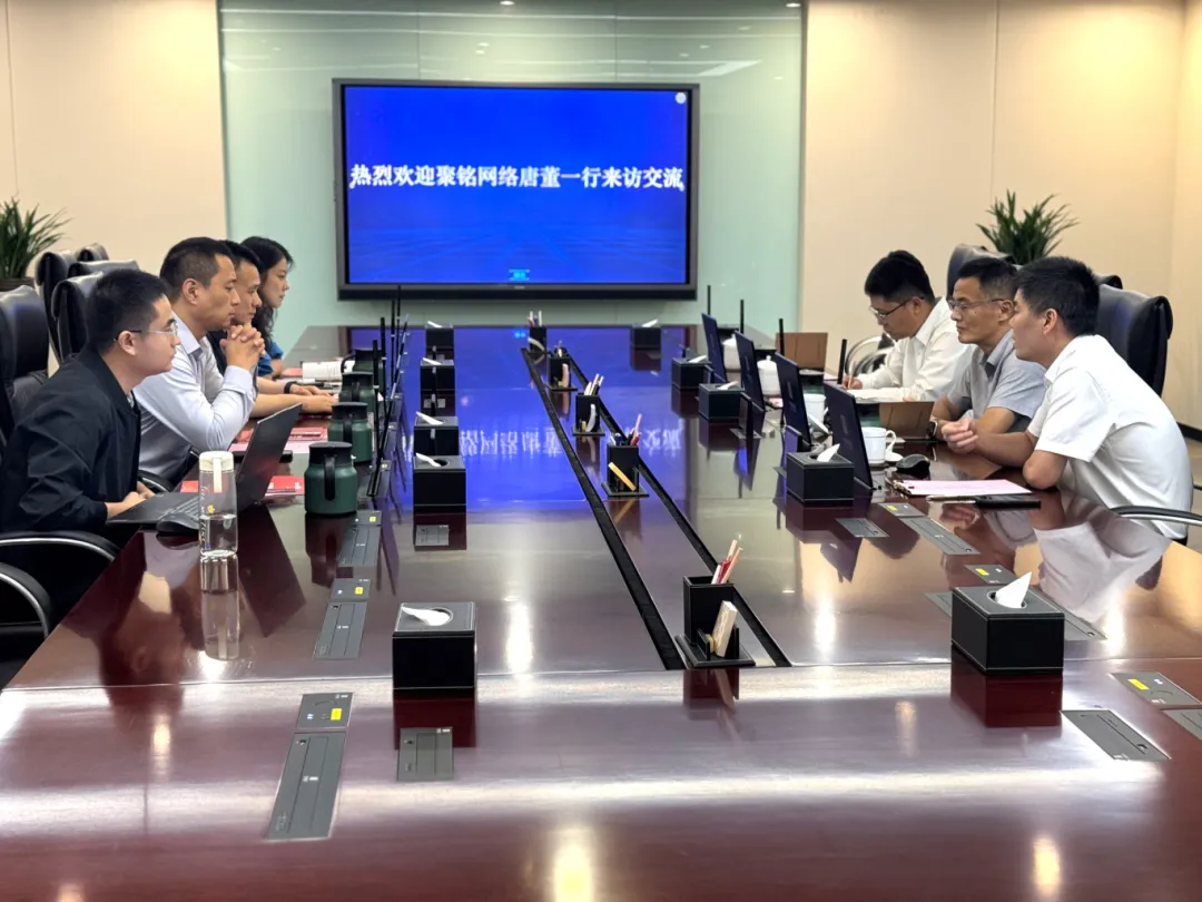 活动当天,聚铭网络董事长唐开达一行在安徽通服网安中心主任张勇的陪同下,参观了安徽通服智慧展厅,深入了解其在数字化服务领域的综合能力。