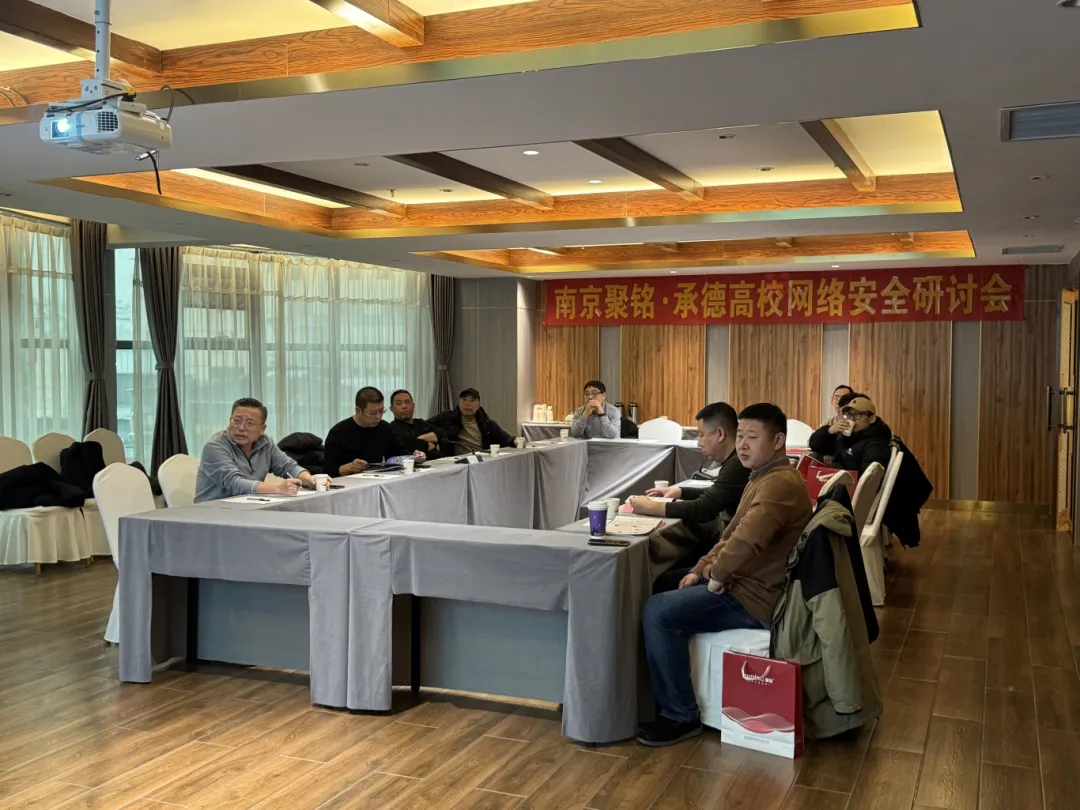 2025年12月12日下午,聚铭网络在河北承德宾馆盛大举办“智护校园·共筑防线——高校网络安全研讨会”。本次会议聚焦数字化校园背景下的网络安全挑战,邀请了河北省内多所高校的信息中心主任及相关领导共聚一堂,就如何以智能化手段守护校园网络、共同构建安全防线进行了深入交流与探讨。