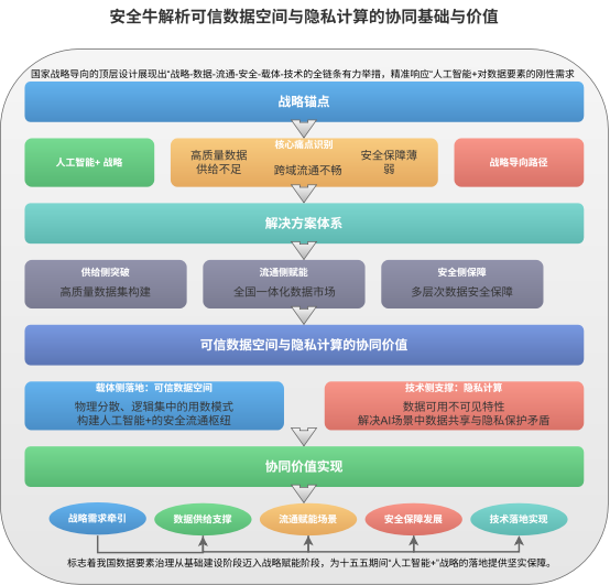 安全牛分析认为,近十年在国家战略导向的顶层设计方面,展现出“战略-数据-流通-安全-载体-技术”的全链条有力举措,精准响应“人工智能+”对数据要素的刚性需求。