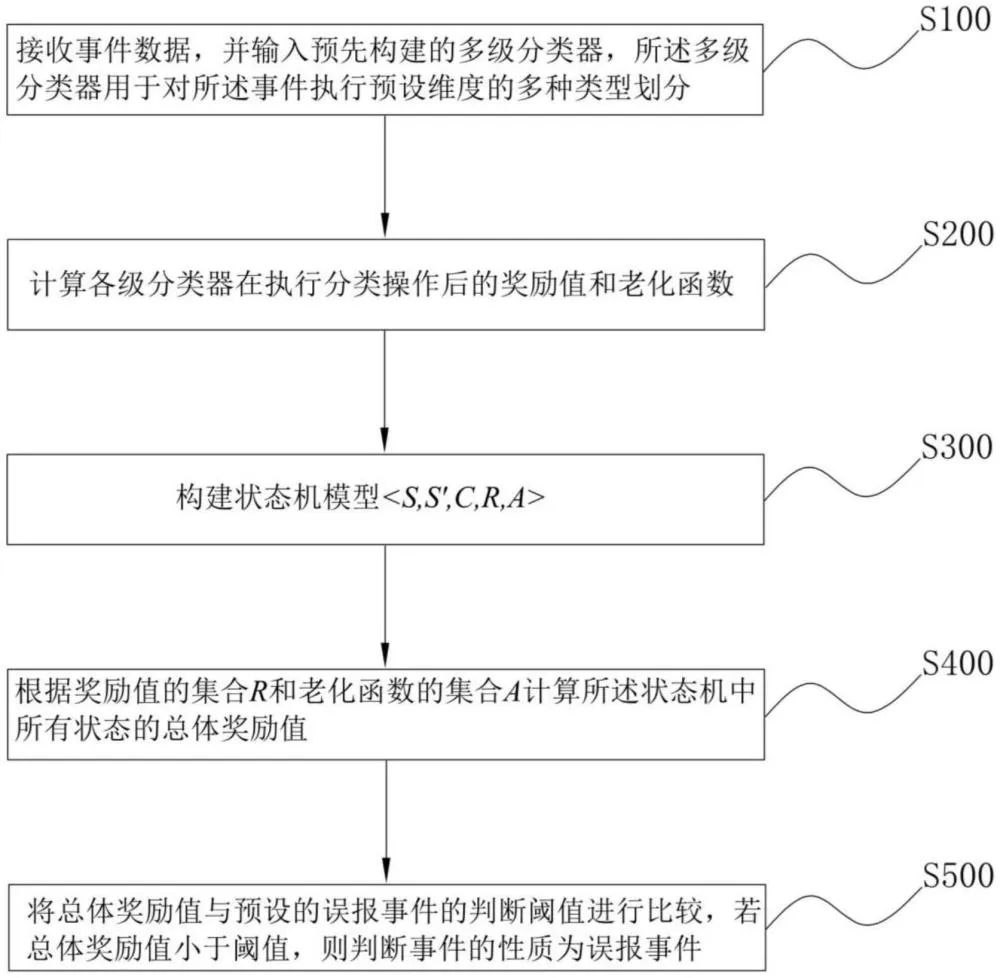 聚铭网络本次获得授权的发明专利,提出了一套全新的误报研判技术方案。该方法构建了一个包含五级分类器的集成框架,对安全事件进行逐层精细化建模:
