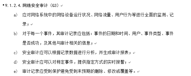 a) 应对网络系统中的网络设备运行状况、网络流量、用户行为等进行日志记录;
