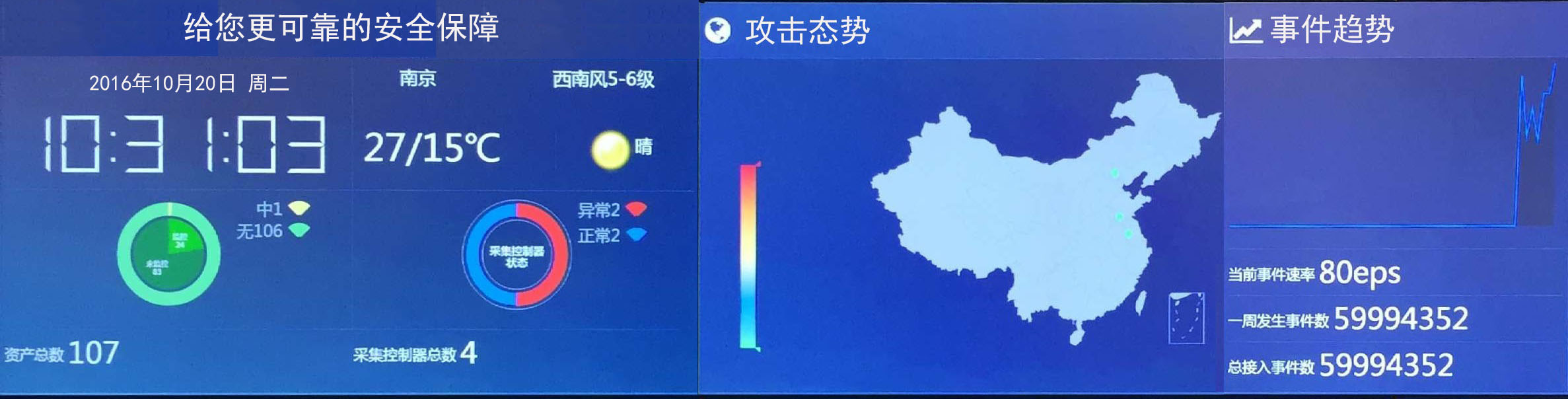 系统通过集中采集各类系统中的安全事件(如网络攻击、防病毒等)、用户访问记录、系统运行日志等各类信息,经过标准化、过滤、归并和告警分析等处理后,以统一格式的日志形式进行集中存储和管理。仅通过简洁的实时监控界面,用户即可实时获知异常安全事件和分析违规情况,系统也提供了强大的安全异常问题分析追溯功能。