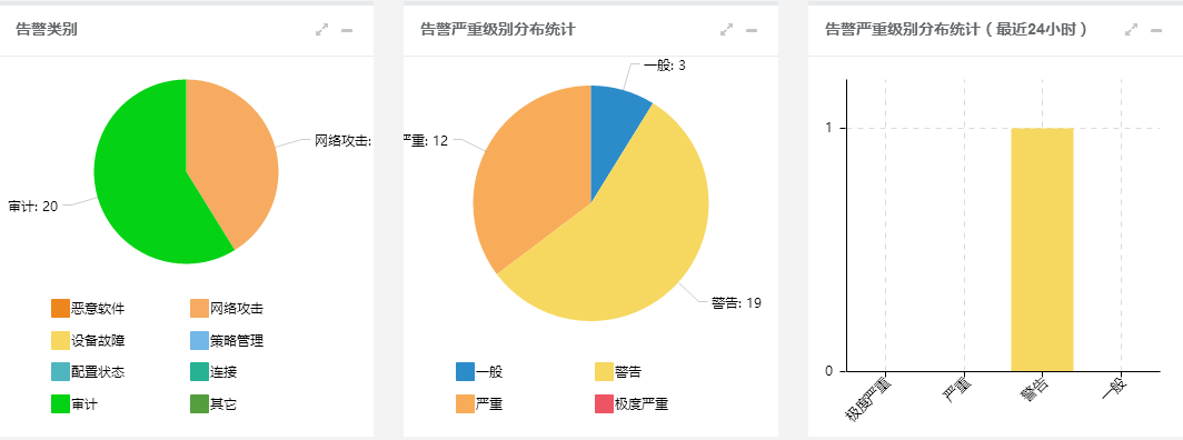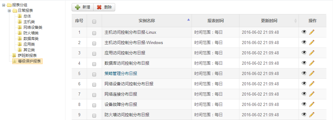 对标准化后的日志,进行关联、统计分析后,形成不同维度的审计报表,如:主机日志分布报表、主机访问控制报表、等等。