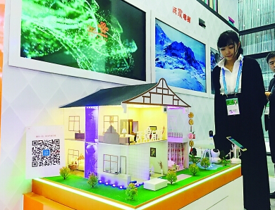 不管是台灯还是音响,所有家电设备都可以通过智能网关控制,图为中国联通展台展示的智能家居整体模型。苏德悦/摄